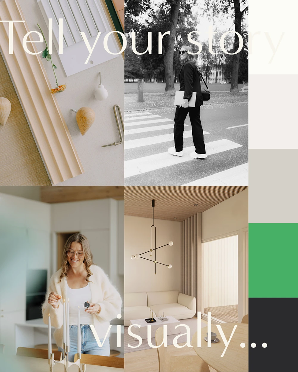 Brändi-ilmeestä suunniteltiin kokonaisuudessaan selkeä ja rauhallinen, mutta ilmeeseen haluttiin myös jotain persoonallisuutta ja elementti, joka toisi muutoin harmoniseen ilmeeseen pientä piristystä ja positiivisuutta. Brändiväreistä löytyykin nyt kirkas vihreä, joka kuvastaa samalla innovatiivisuutta ja kekseliäisyyttä, jota Odecorin suunnittelemat tilaratkaisut usein tarjoavat.
