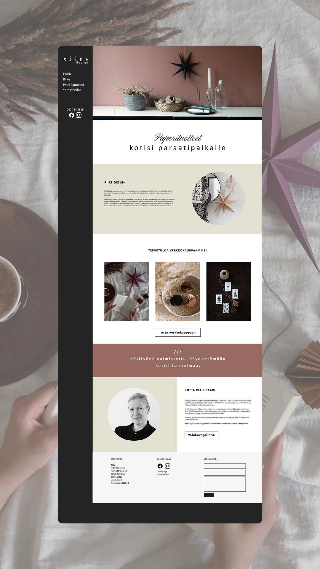 Riiken tuotteita yhdistää luonnonläheisyys ja skandinaavinen muotoilu. Näiden teemojen lisäksi verkkosivujen haluttiin viestivän tunnelmallisuutta ja lämpöä. Tämä projekti sisälsi värimaailman ja etusivun visuaalisen suunnittelun.